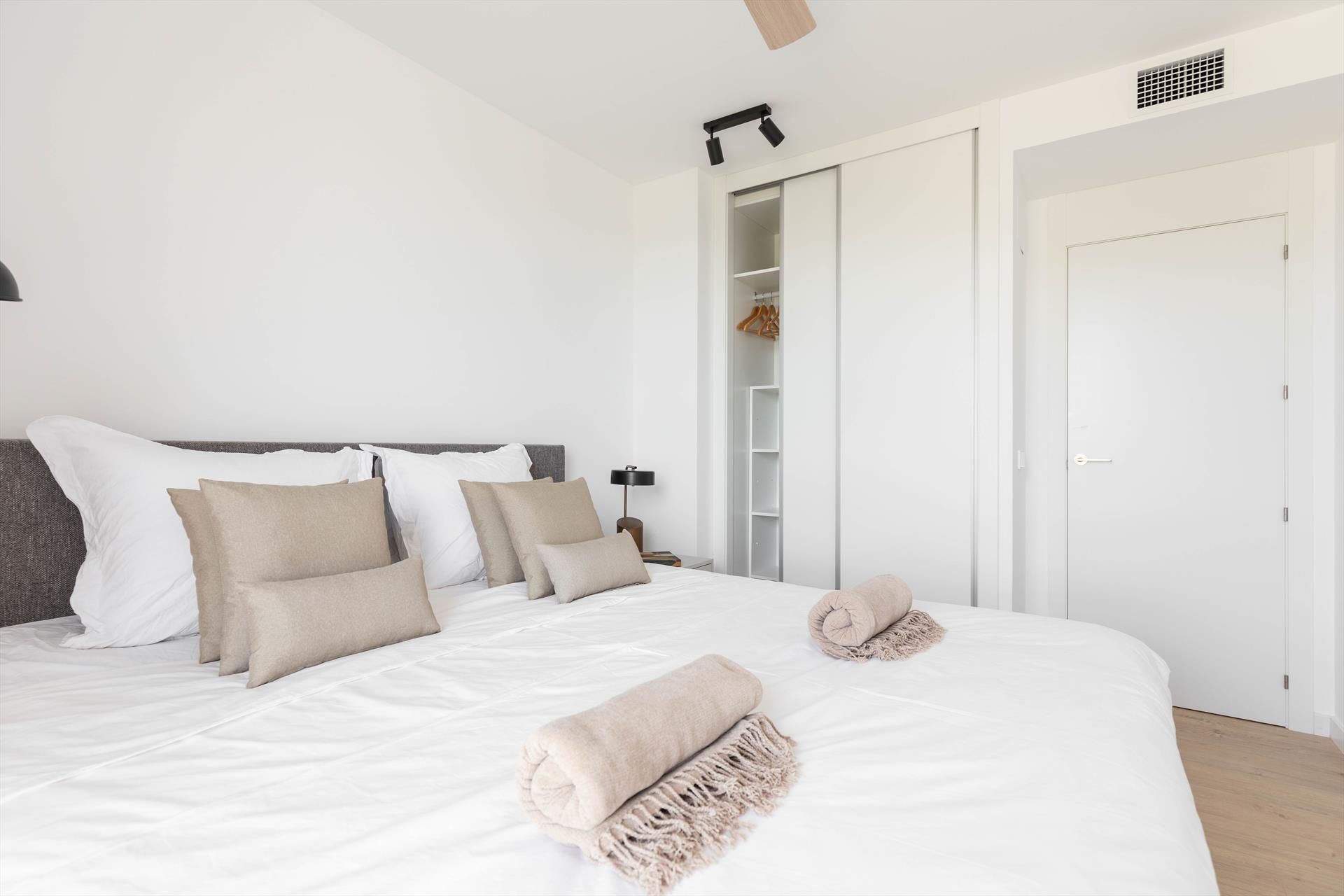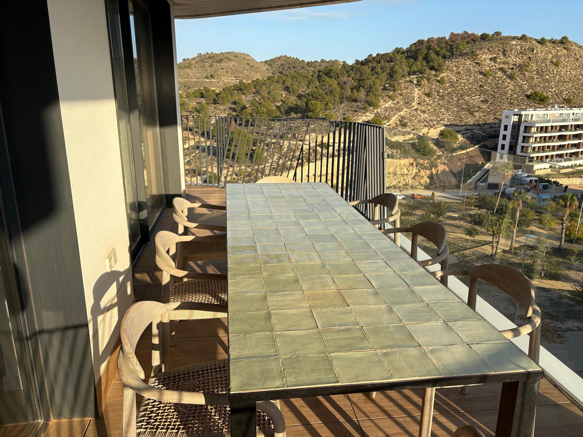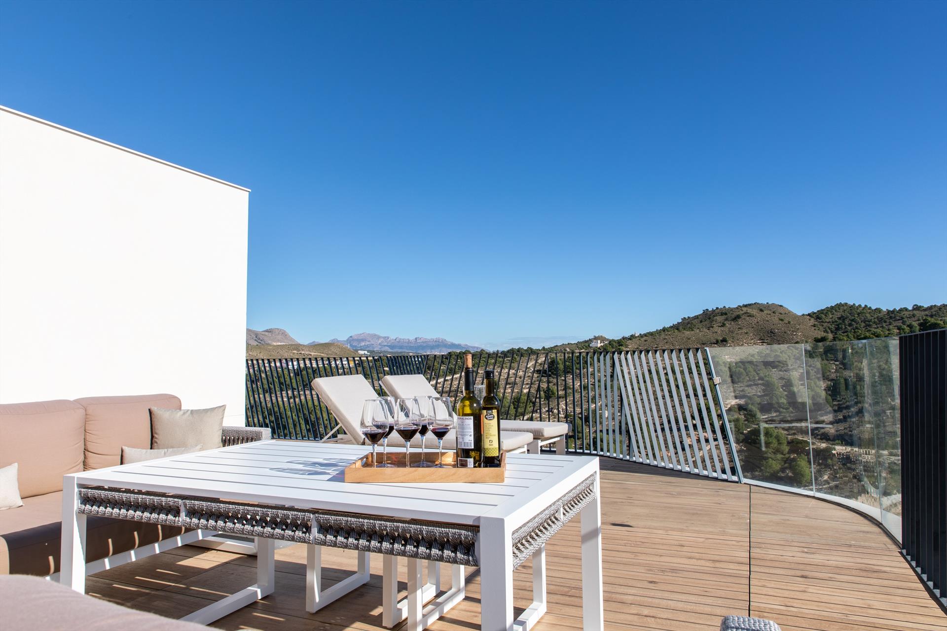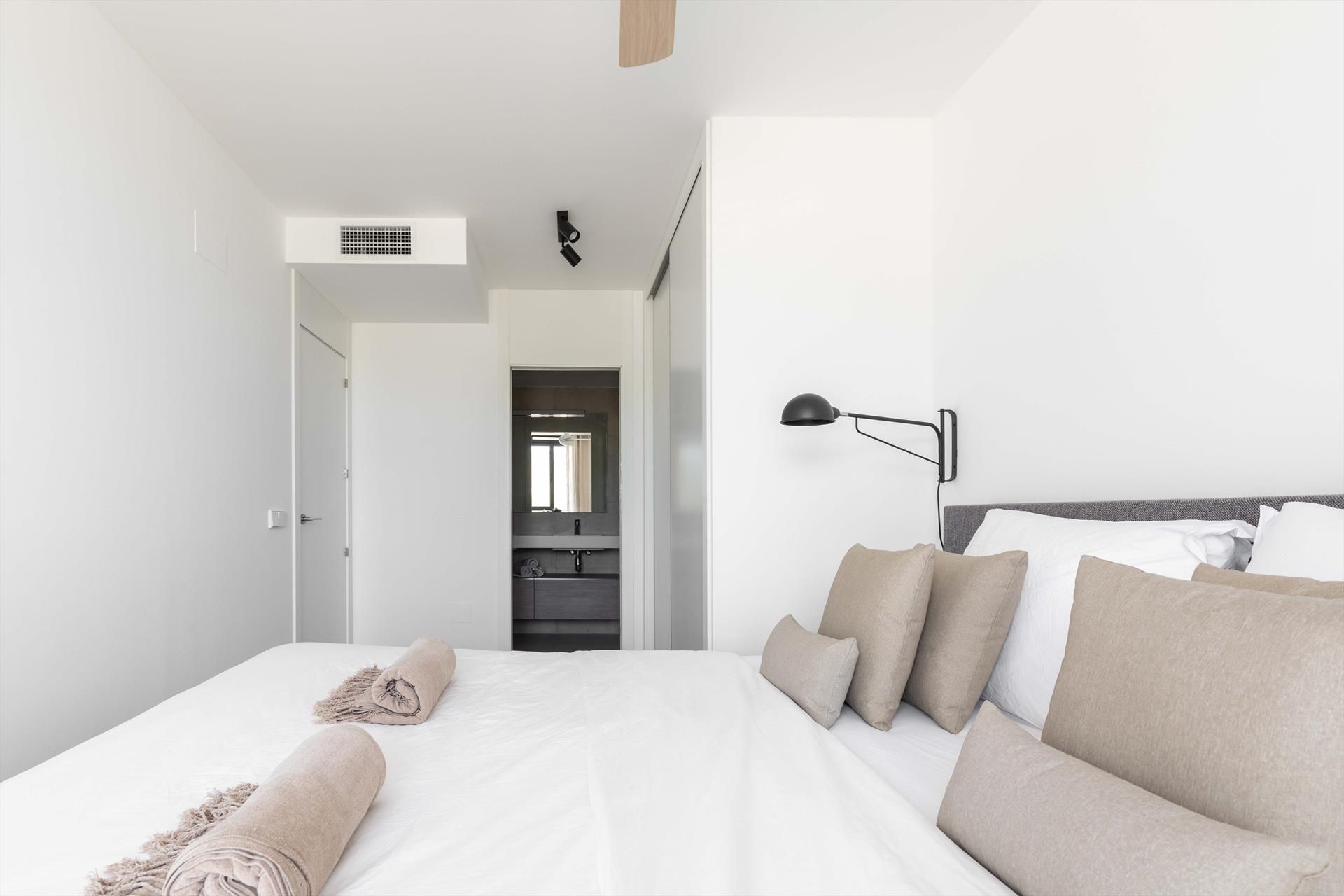 El penthouse cuenta con 3 dormitorios y 3 baños, distribuidos en 2 niveles. El alojamiento ofrece privacidad, un jardín comunitario con césped y árboles, maravillosas vistas al mar y hermosas vistas del valle, las montañas y la calle. Su confort y la proximidad a la playa, actividades deportivas y opciones de entretenimiento hacen de este un penthouse ideal para pasar sus vacaciones en España con familia o amigos.