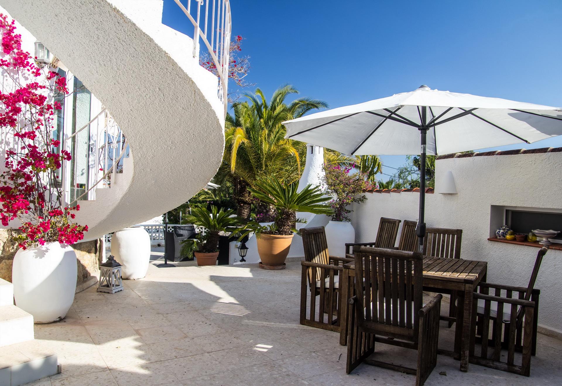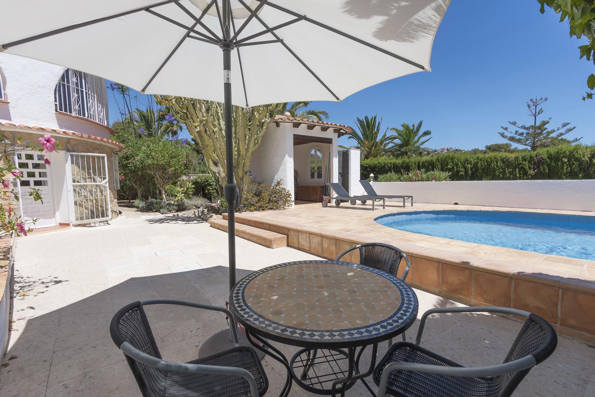Hermosa y romántica casa en Benissa, Costa Blanca, España, con piscina privada para 6 personas. La casa está situada en una zona residencial costera y montañosa, a 3 km de la playa Cala Advocat y a 5 km de Calpe y Moraira.
