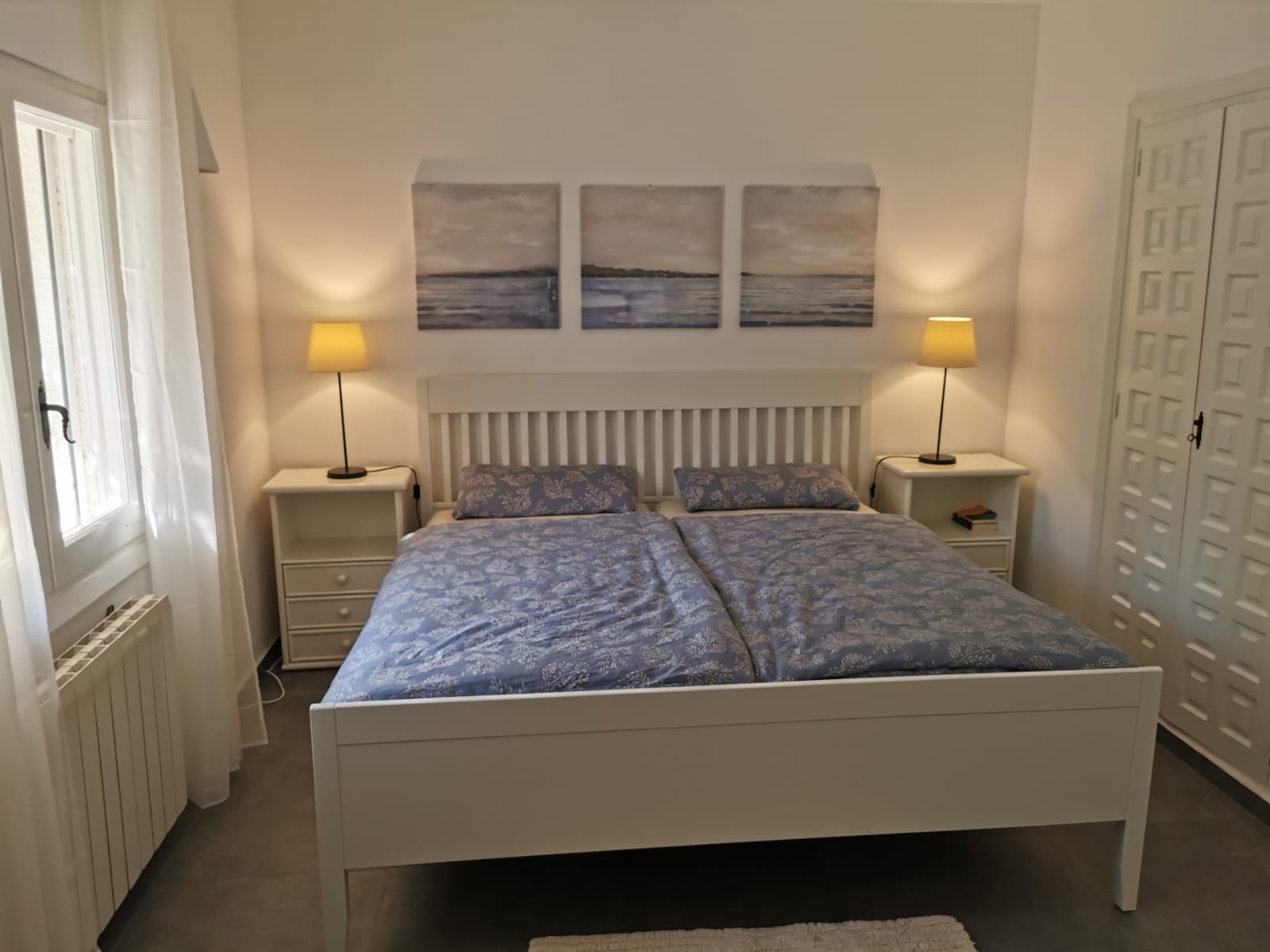 • dormitorio con aire acondicionado y cama queen size (medidas 200 por 160cm)