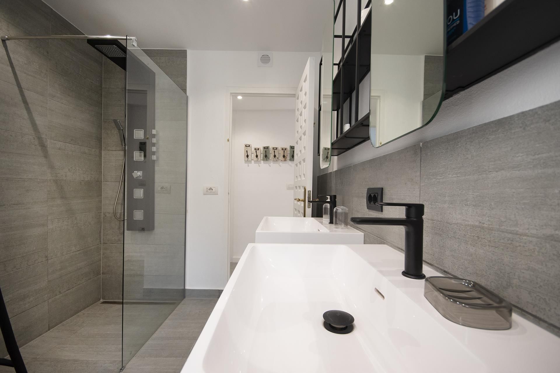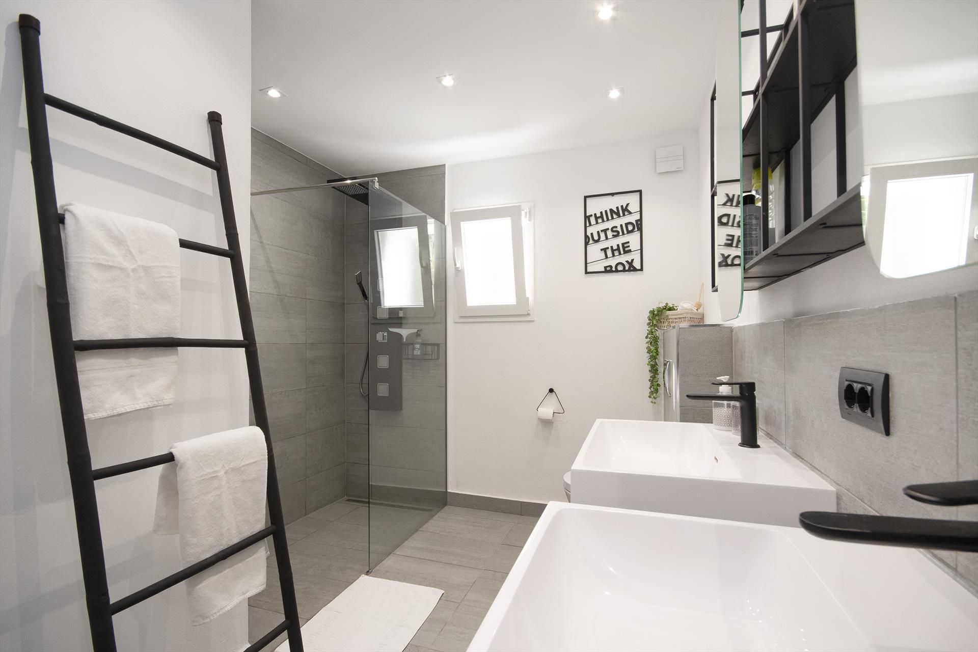 • 2 Badezimmer jeweils mit Doppelwaschbecken und Dusche