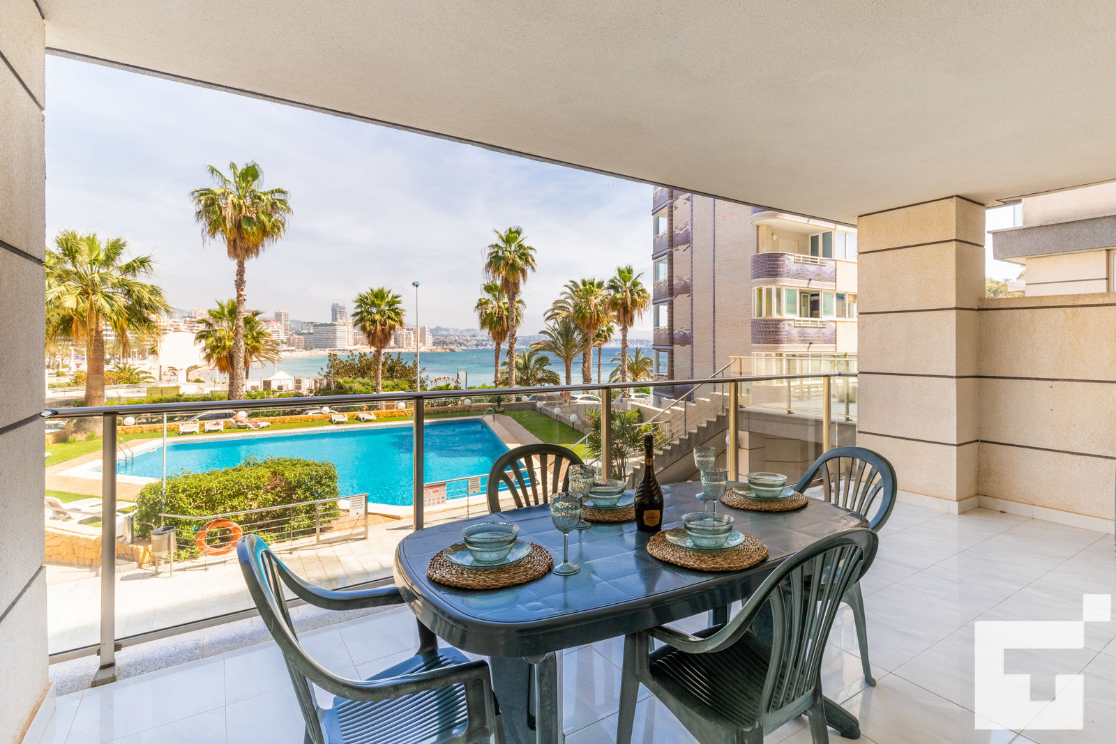 Apartment in Calpe, Costa Blanca, Spanien mit Gemeinschaftspool für 4 Personen. Das Apartment befindet sich in der Nähe von Restaurants und Bars, Geschäften und Supermärkten und ist nur 25 m vom Strand La Fossa / Levante entfernt.