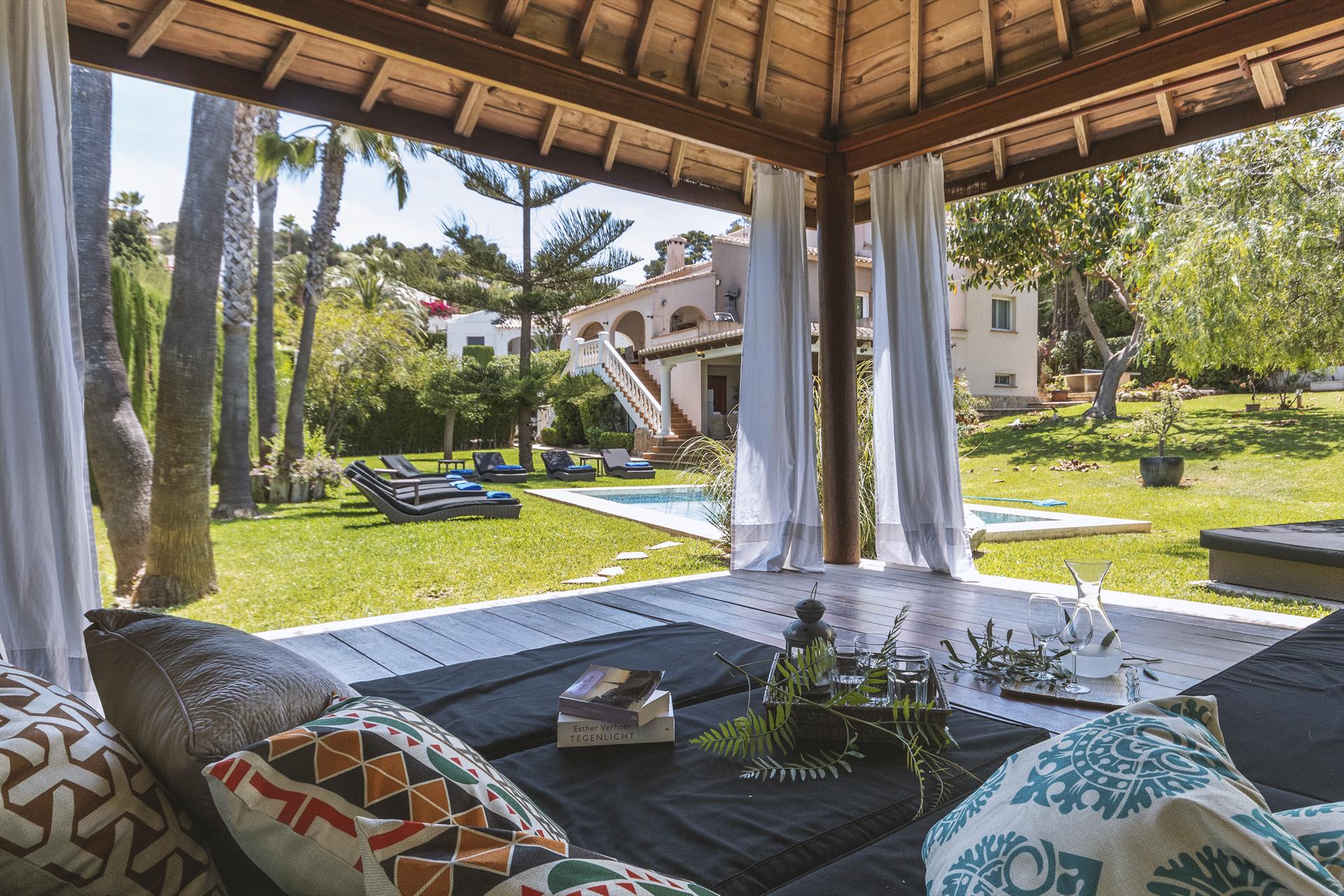 Große und luxuriöse Villa mit privatem Pool in Javea, Costa Blanca, Spanien für 12 Personen. Das Haus befindet sich in einem Wohngebiet nahe dem Strand und in der Nähe von Restaurants und Bars.