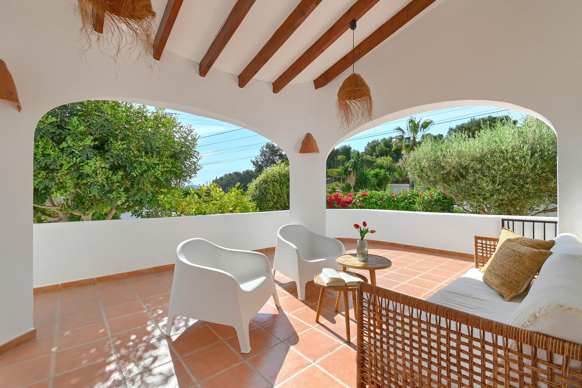 Wunderschöne und klassische Villa in Moraira, Costa Blanca, Spanien, mit privatem Pool für 8 Personen. Das Haus befindet sich in einer Küsten- und Wohngegend, in der Nähe von Geschäften, 1 km vom Strand Playa de les Playetes und 1 km vom Mittelmeer entfernt.