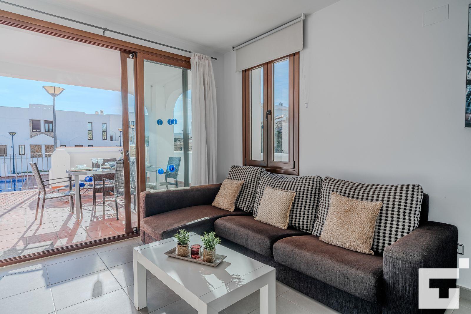 The house has 2 bedrooms and 2 bathrooms. The accommodation offers a wonderful lawned garden and a lawned communal garden. Its comfort and the vicinity of the beach, shops and entertainment make this a fine villa to spend your holidays in Spain with family or friends.