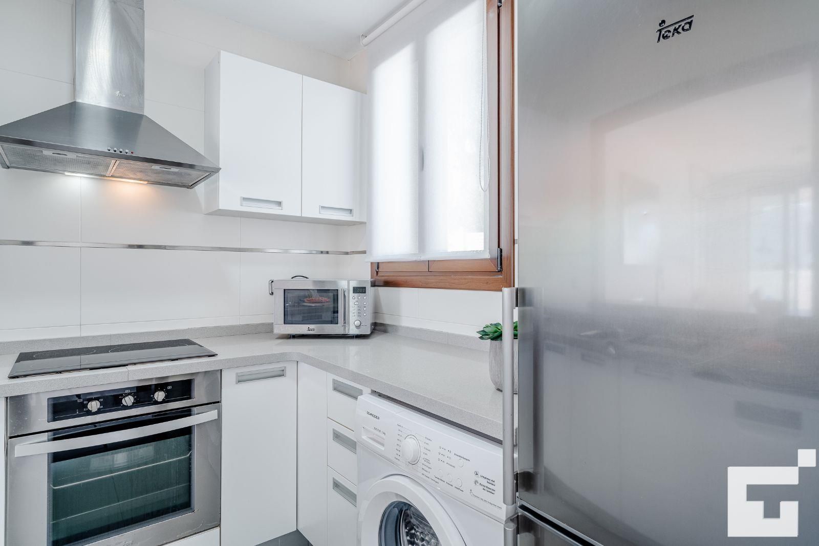 • kitchen with electric hob, electric oven, microwave, dishwasher, refrigerator, freezer, coffee machine, mixer, toaster and juicer