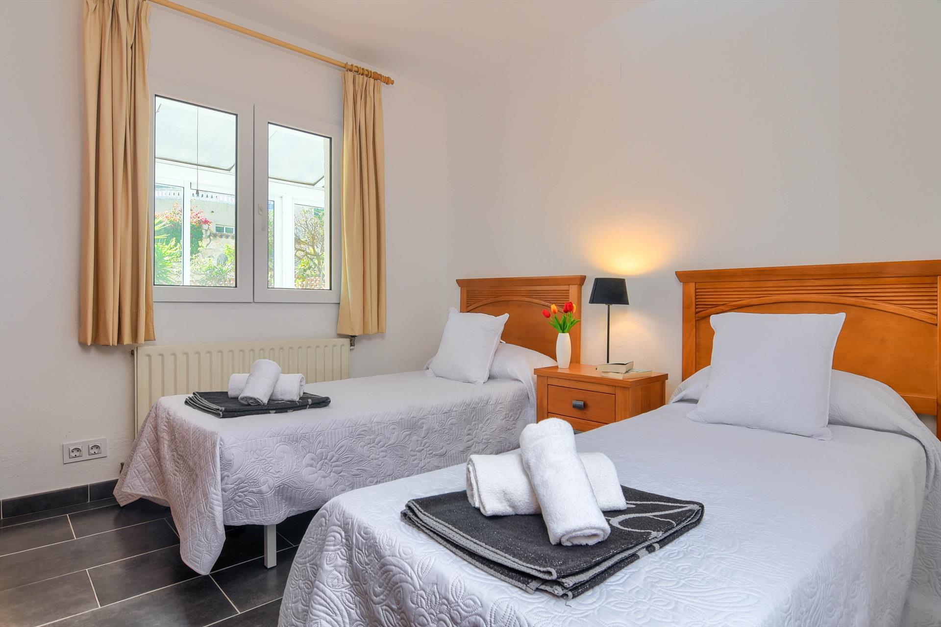• 2 bedrooms with air conditioning, each with 2 single beds (measuring 190 by 80cm)