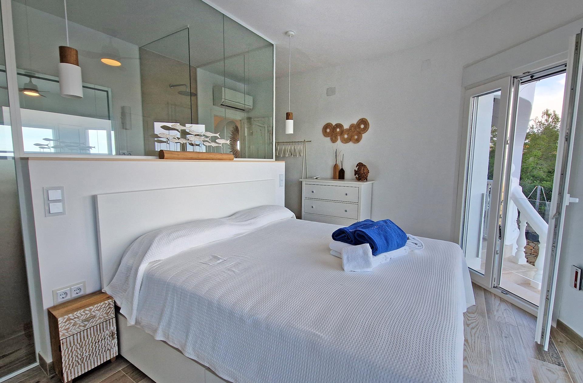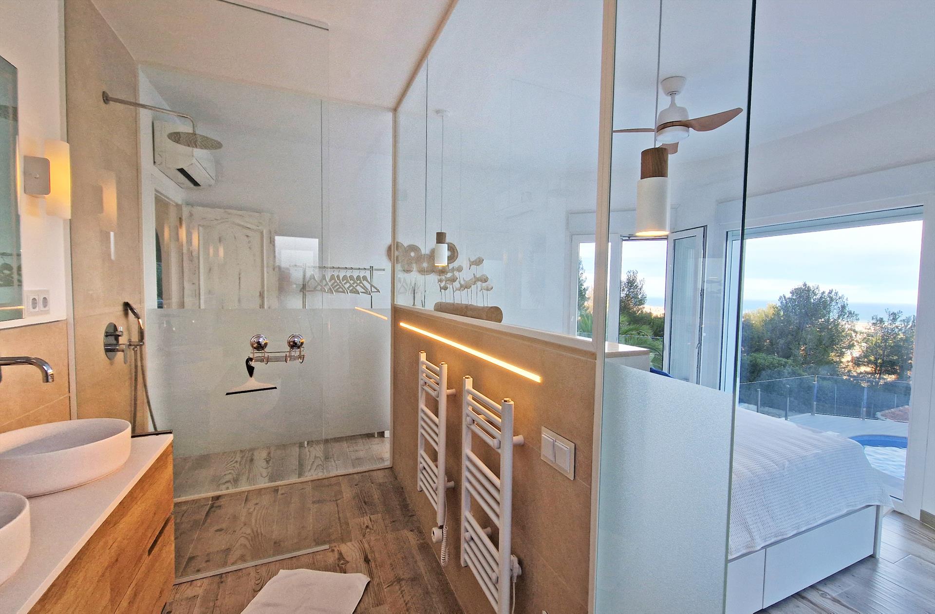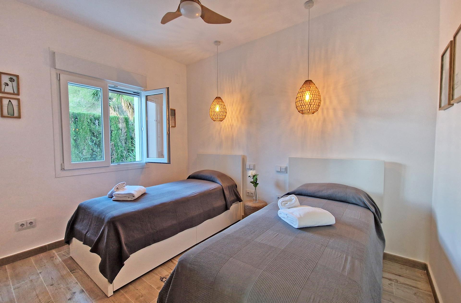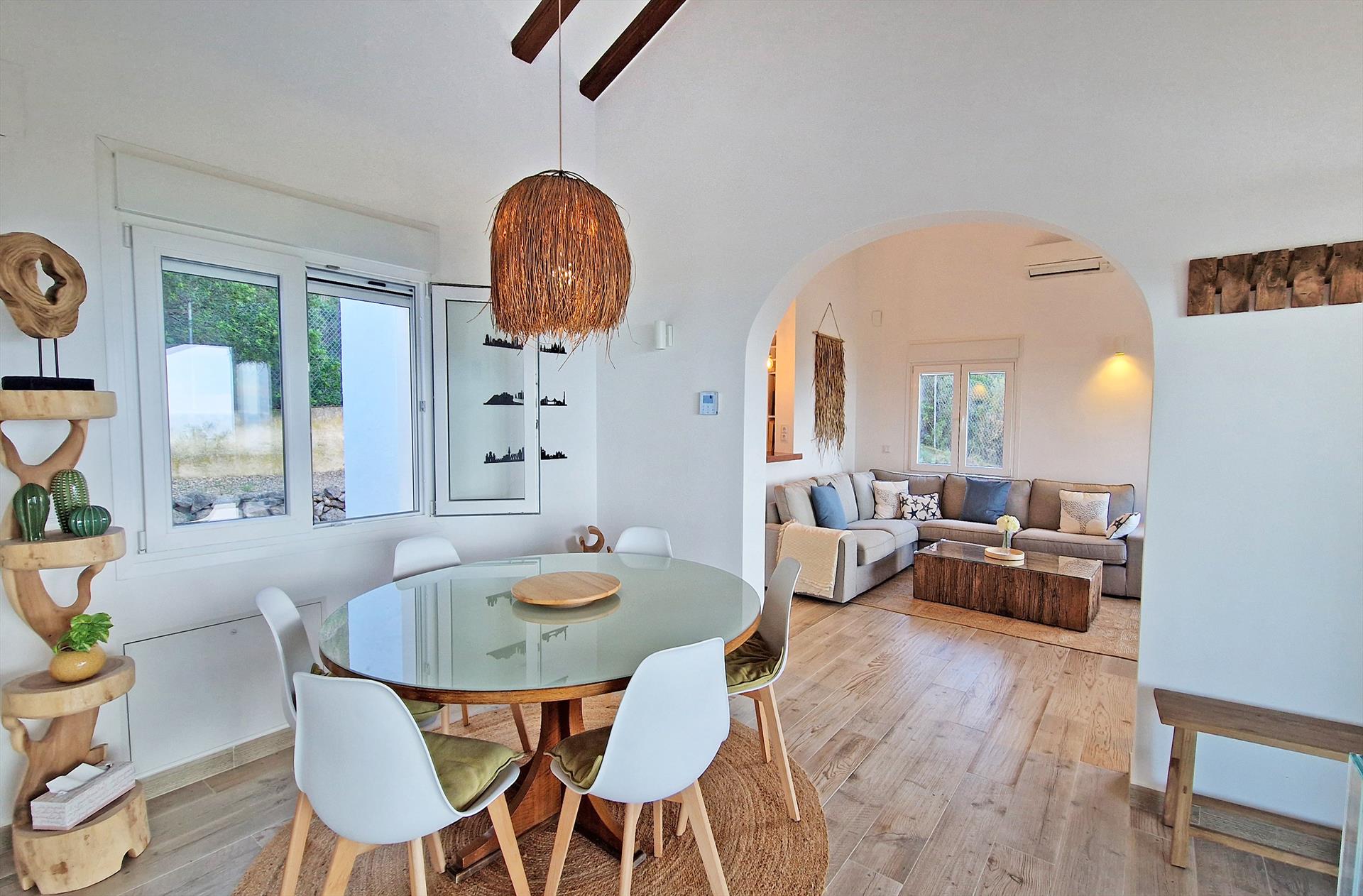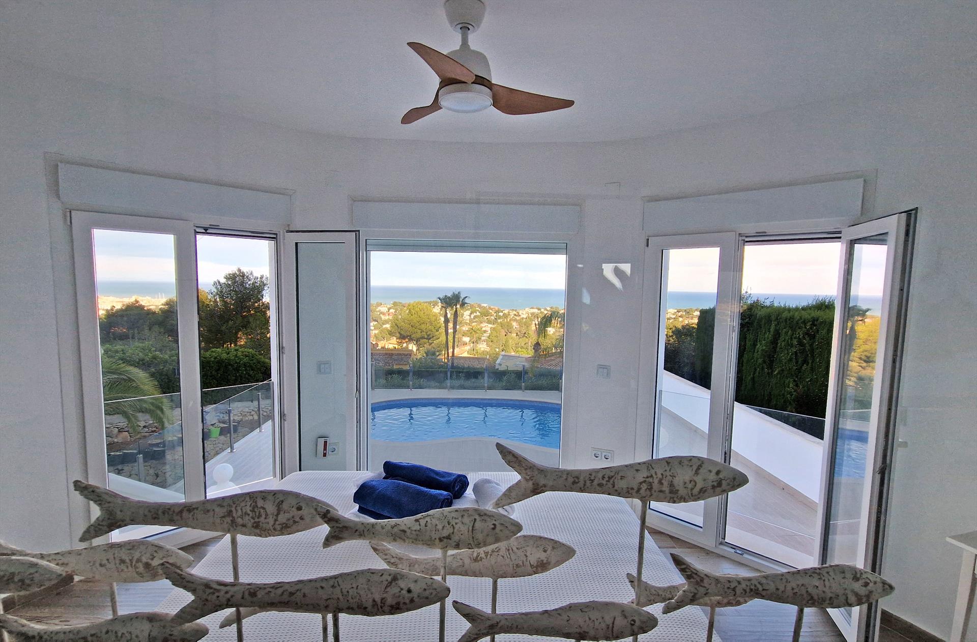 The villa has 4 bedrooms and 3 bathrooms, spread over 2 levels. The accommodation offers privacy, a beautiful pool, wonderful views of the bay, the sea, the valley and the town, as well as beautiful views of the mountains and the port. Its comfort and the proximity to the beach, sports activities, sights and culture make this a fine villa to spend your holidays in Spain with family or friends, and even your pets.