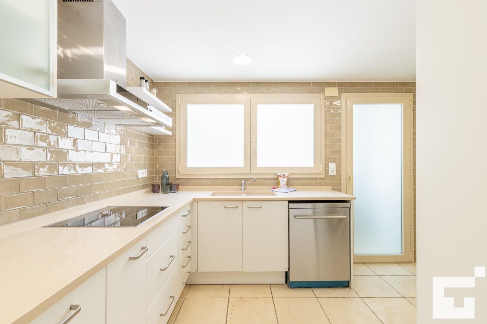 • kitchen with electric hob, electric oven, microwave, dishwasher, refrigerator, freezer, coffee machine, mixer, toaster, and juicer