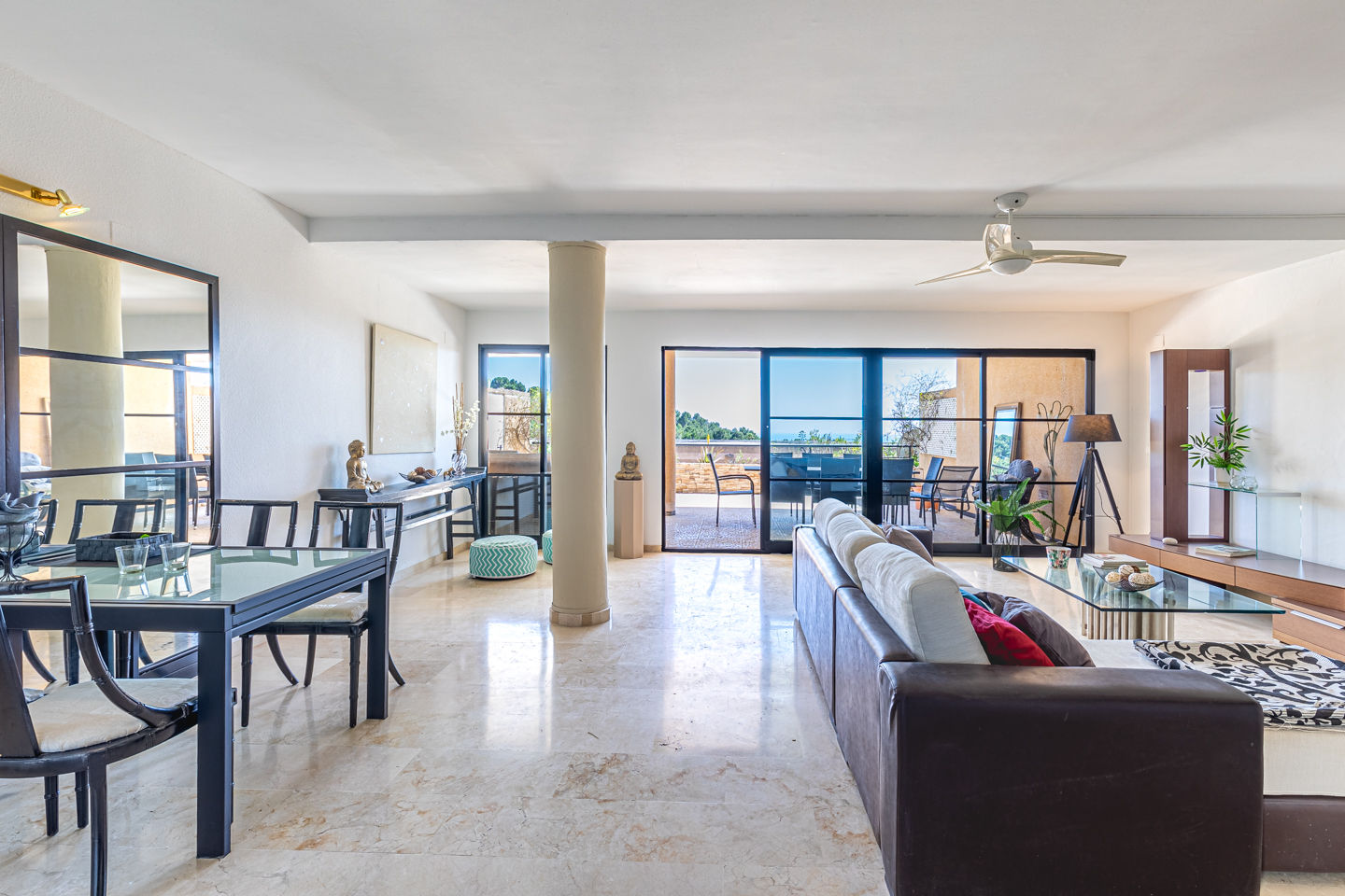 L'appartement comprend 4 chambres et 2 salles de bains. Le logement offre intimité, un jardin commun gazonné avec des arbres et de belles vues sur la mer et le jardin. Son confort et la proximité de la plage, des commerces, des activités sportives, de la vie nocturne, des sites touristiques et de la culture font de cet appartement un excellent choix pour passer vos vacances en Espagne en famille ou entre amis.