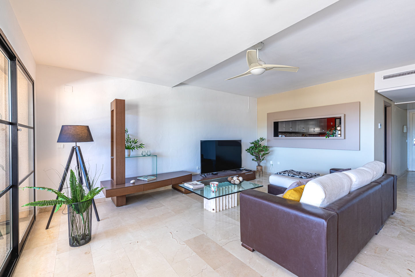 • salon/salle à manger avec climatisation, télévision et chaîne hi-fi