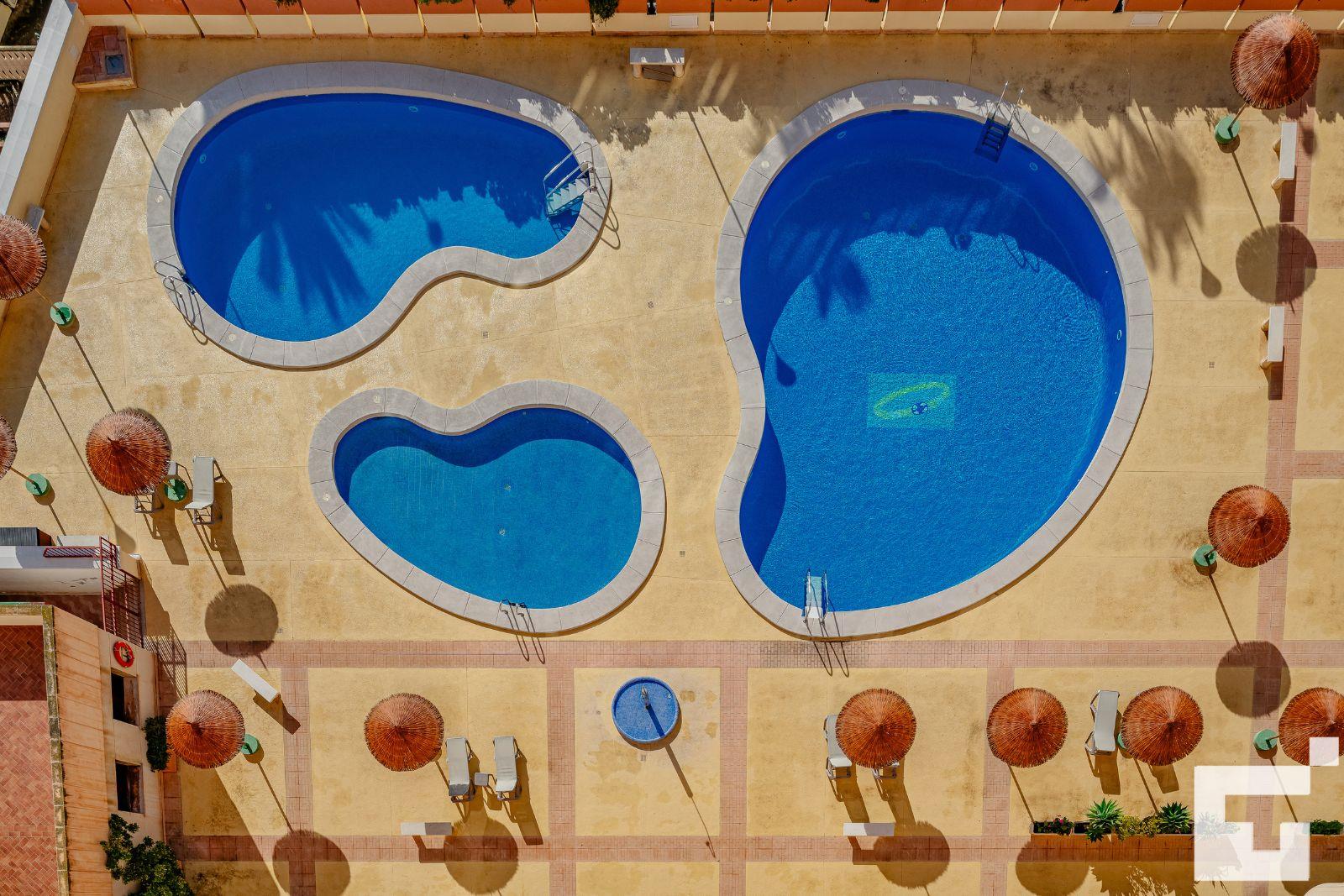 Appartement avec piscine commune à Calpe, Costa Blanca, Espagne pour 4 personnes. L'appartement est situé à proximité de restaurants et bars, de boutiques et supermarchés, et se trouve à 25 m de la plage Levante / La Fossa.