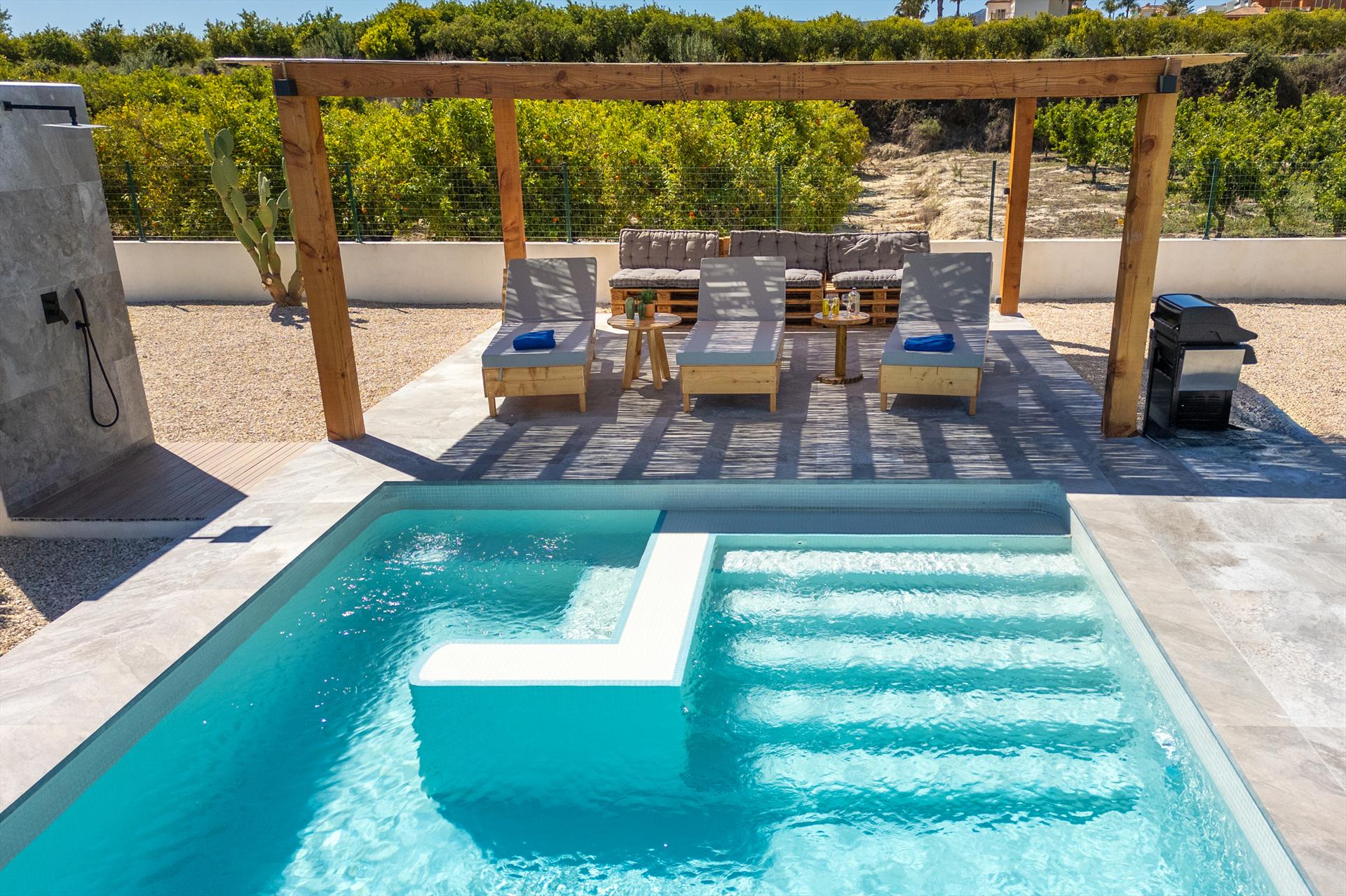 Extérieur : Salon de jardin et transats (pas nécessairement disponibles dans les appartements et maisons de ville)
