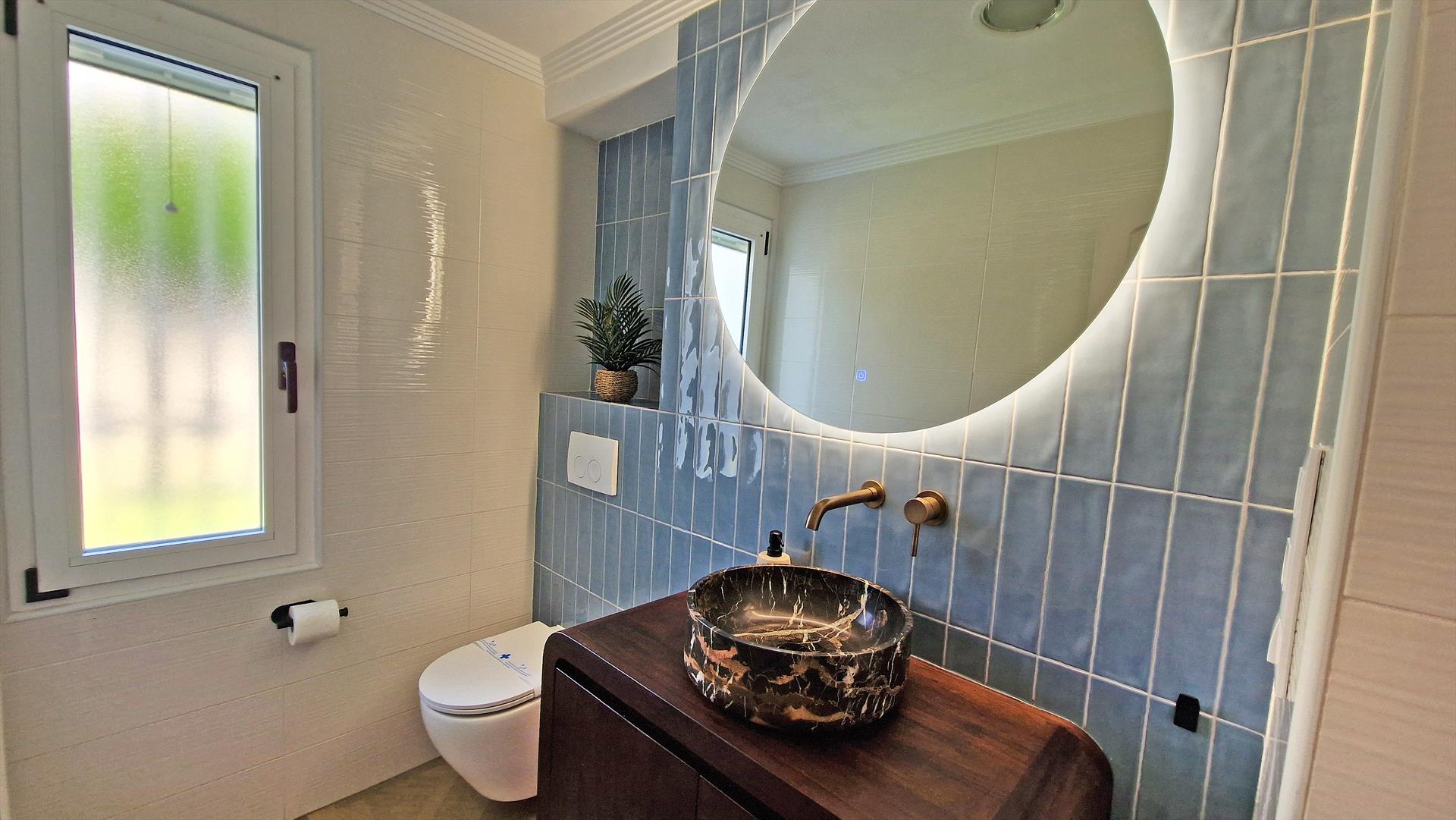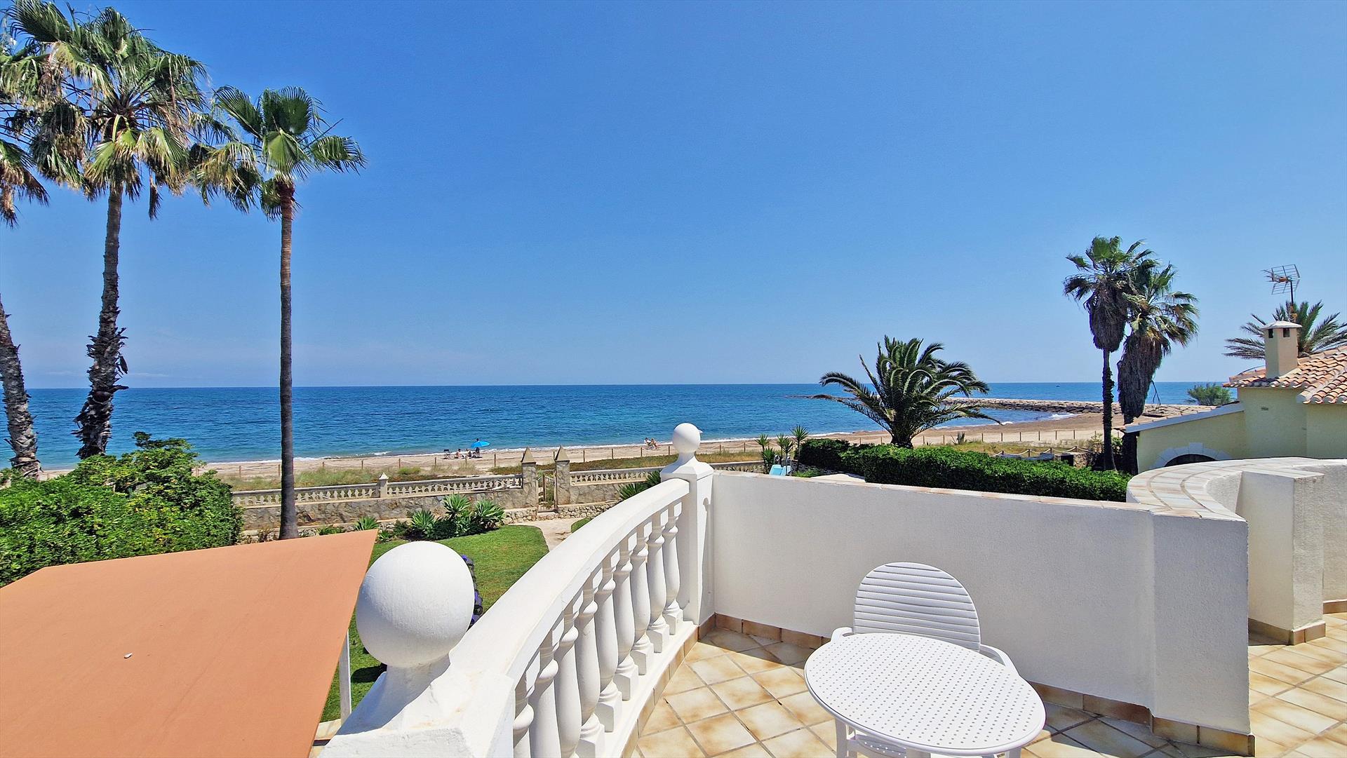 La villa dispose de 6 chambres, 3 salles de bains et 1 toilette invités, réparties sur 2 niveaux. L'hébergement offre de l'intimité, un merveilleux jardin avec pelouse, gravier et arbres, une piscine agréable, des vues imprenables sur la mer et les montagnes, ainsi que de belles vues sur la plage. Son confort et la proximité de la plage, des commerces, des activités sportives et des lieux de divertissement font de cette villa un excellent choix pour passer vos vacances en Espagne en famille ou entre amis.