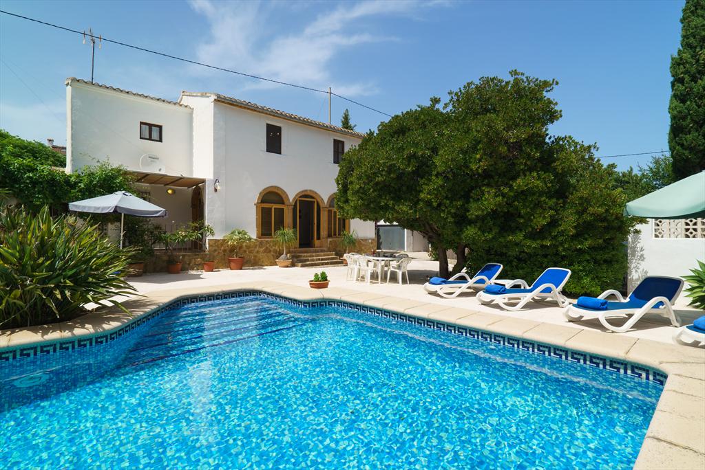 Maison de vacances classique et romantique à Jávea, Costa Blanca, Espagne avec piscine privée pour 6 personnes. La maison est située dans une zone rurale proche de la plage.