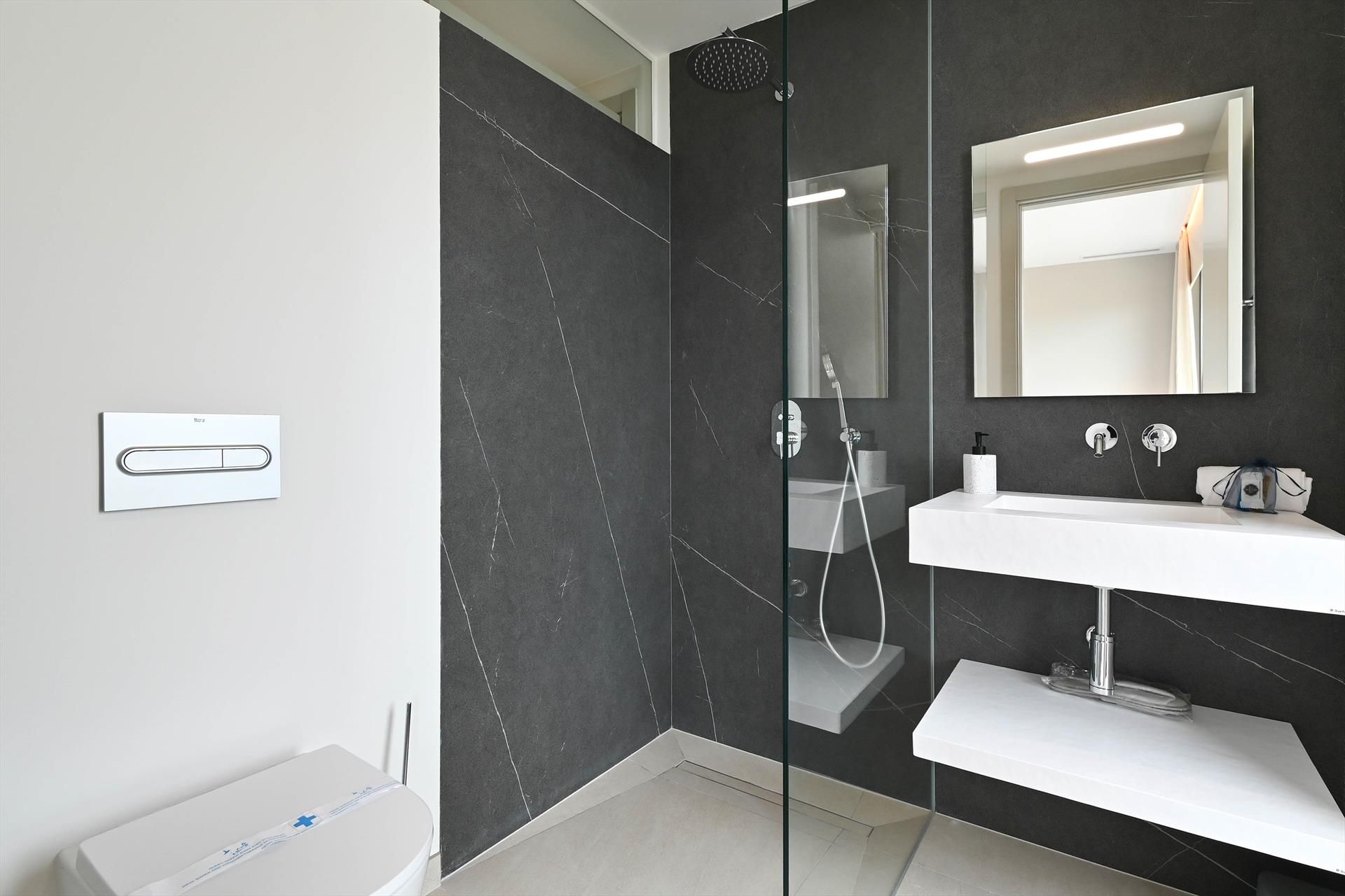 • 2 salles de bain attenantes, chacune avec lavabo simple, douche et toilette