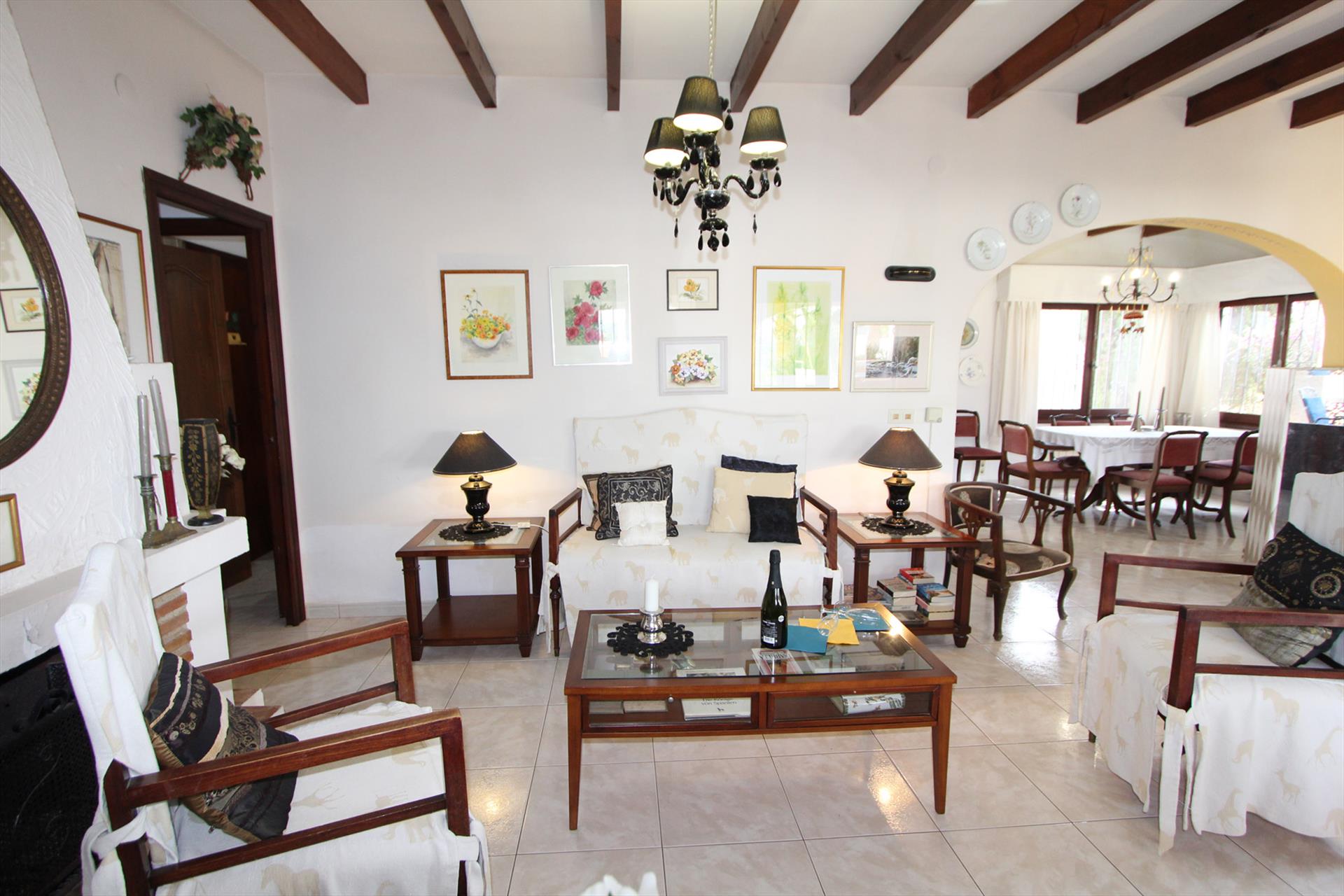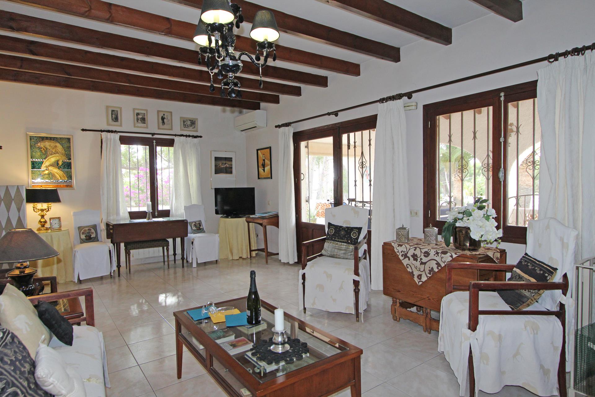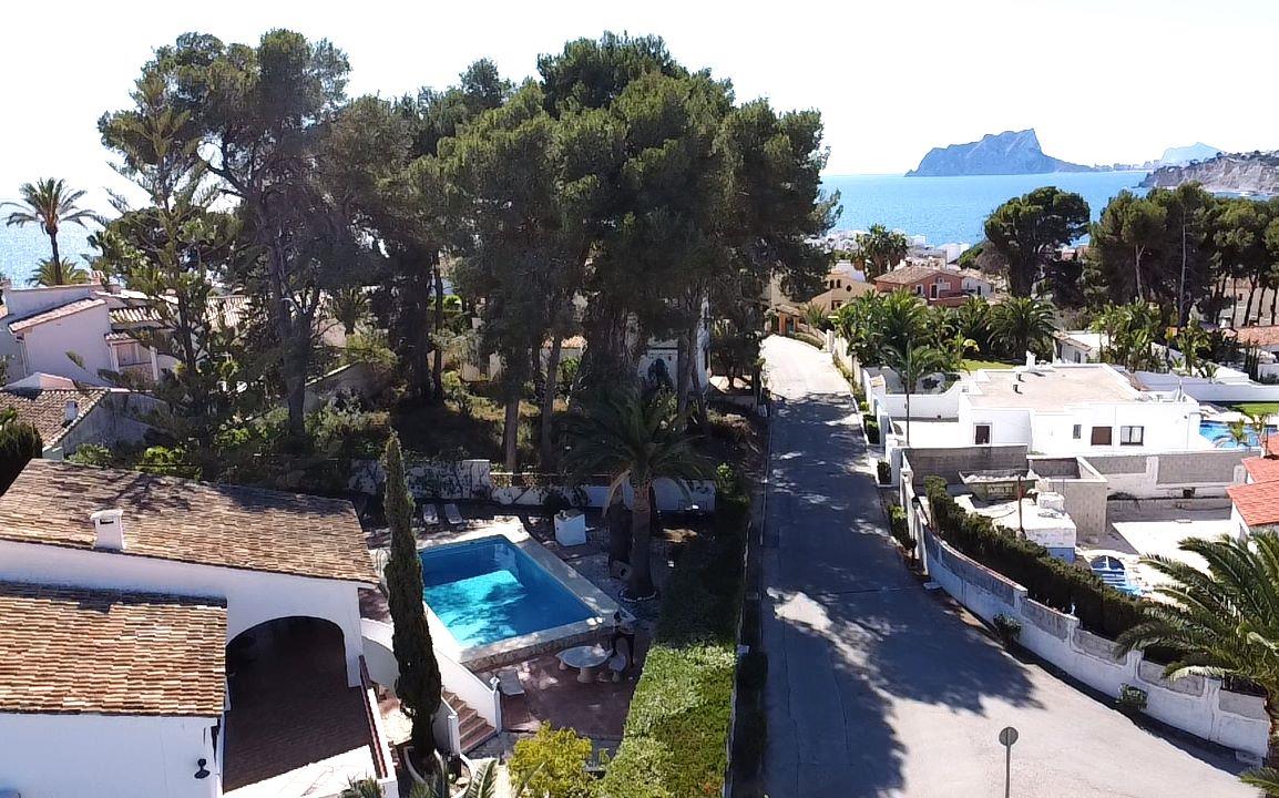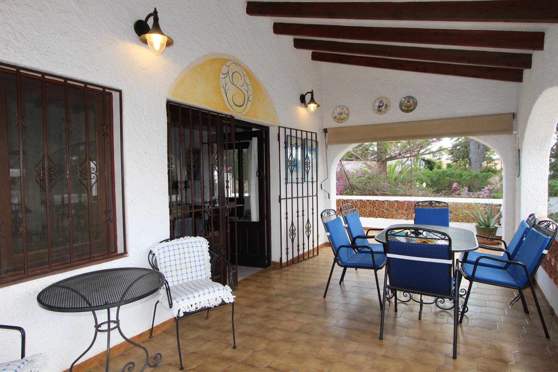 Belle villa classique avec piscine privée à Moraira, sur la Costa Blanca, Espagne pour 8 personnes. La maison de vacances est située dans une région résidentielle, près de restaurants et bars, de magasins, de supermarchés et d'un court de tennis et à 500 m de la plage de ampolla.
