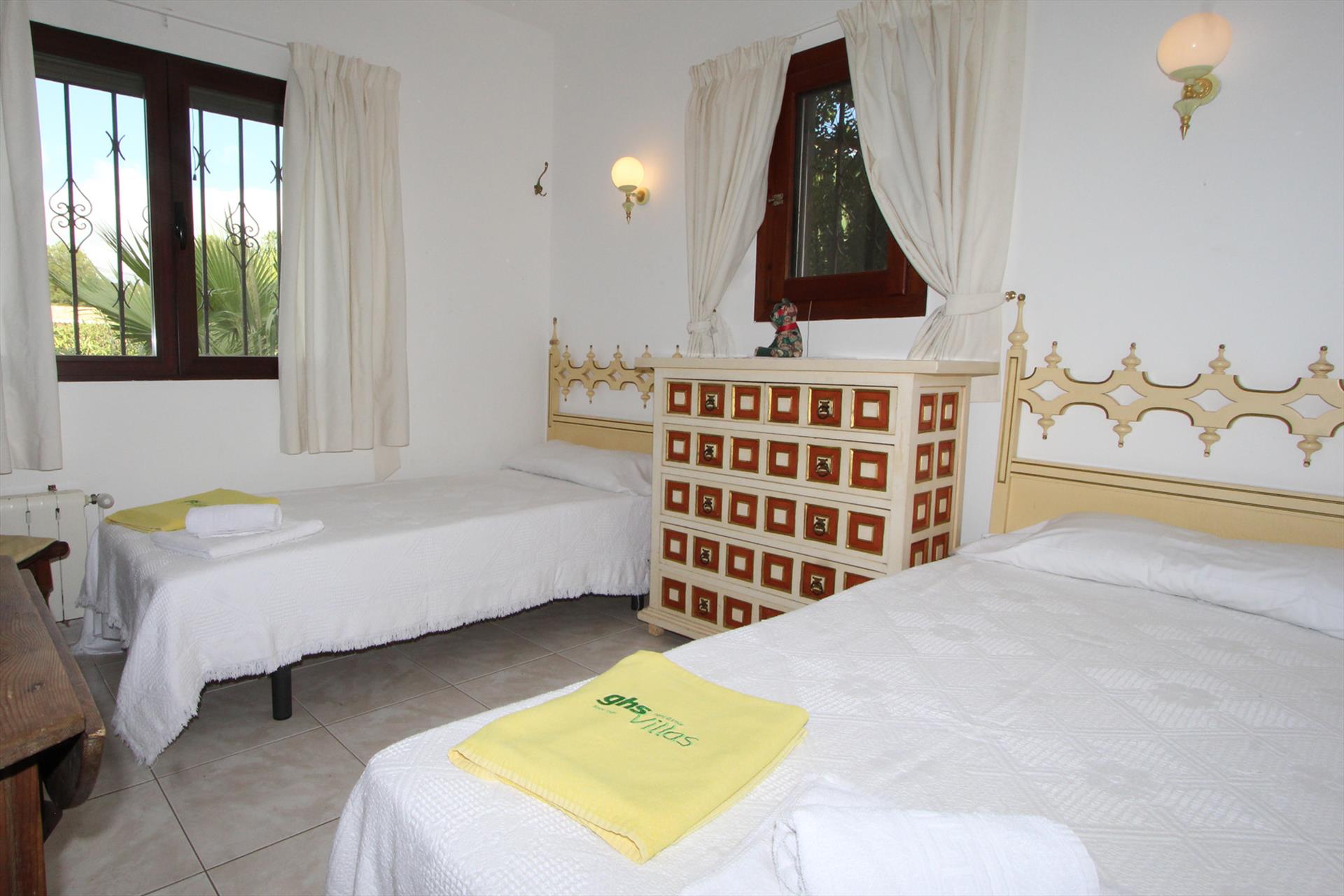 La villa a 4 chambres à coucher et 3 salles de bain, réparties sur 2 étages. Le logement offre un beau jardin avec d´arbres et une belle piscine. Le comfort et le voisinage de la plage, d'endroits pour faire du shopping, d'activités sportives, de lieux de divertissement, d'endroits pour sortir, d'attractions et de culture rendent cette villa un logement convenable pour passer les vacances en Espagne avec votre famille ou vos amis et même vos animaux domestiques.