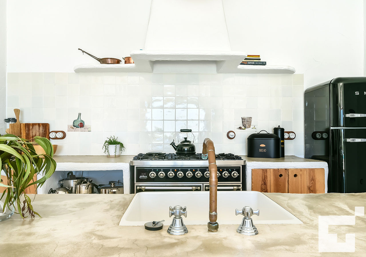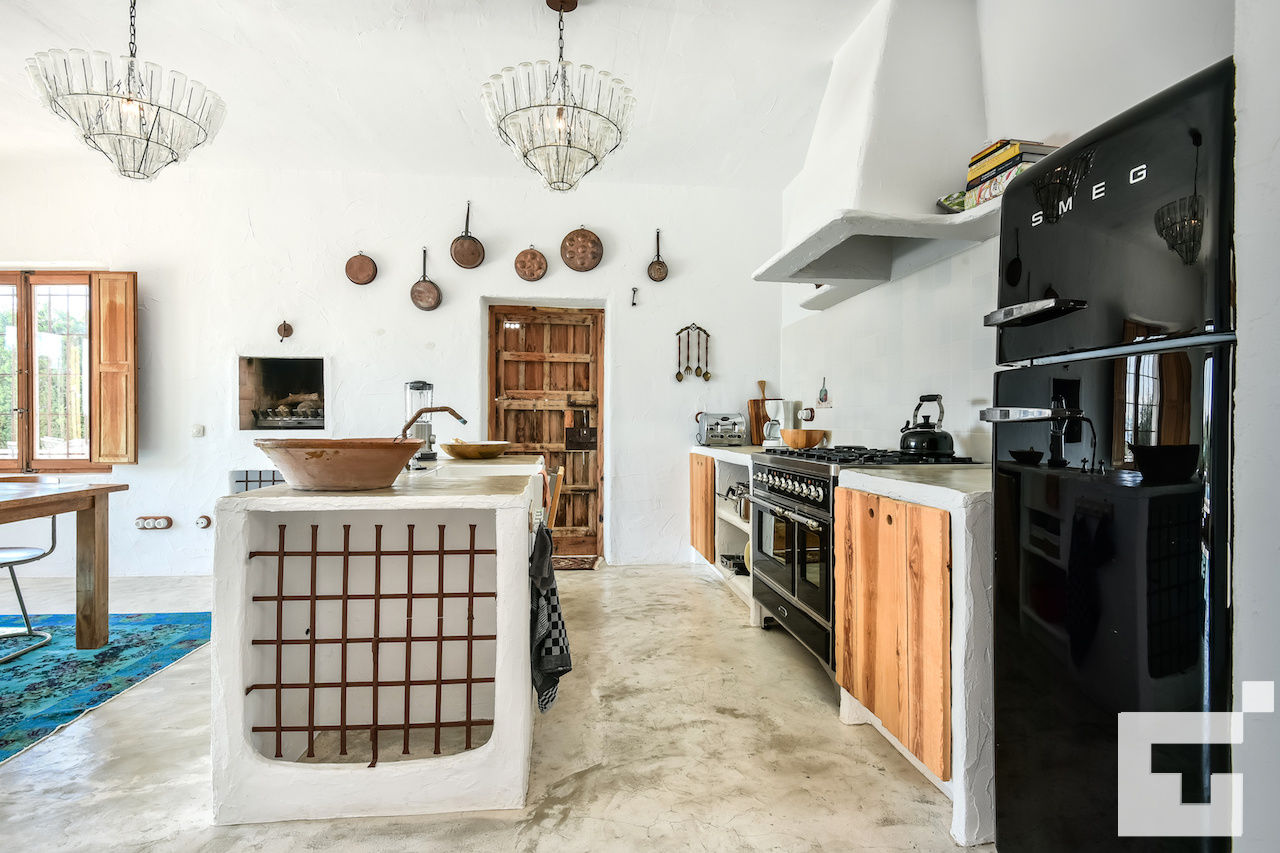 • cuisine-salle à manger ouverte avec plaque de cuisson au gaz, four électrique, lave-vaisselle, réfrigérateur, congélateur, machine à café, bouilloire électrique, mixeur, grille-pain et presse-agrumes