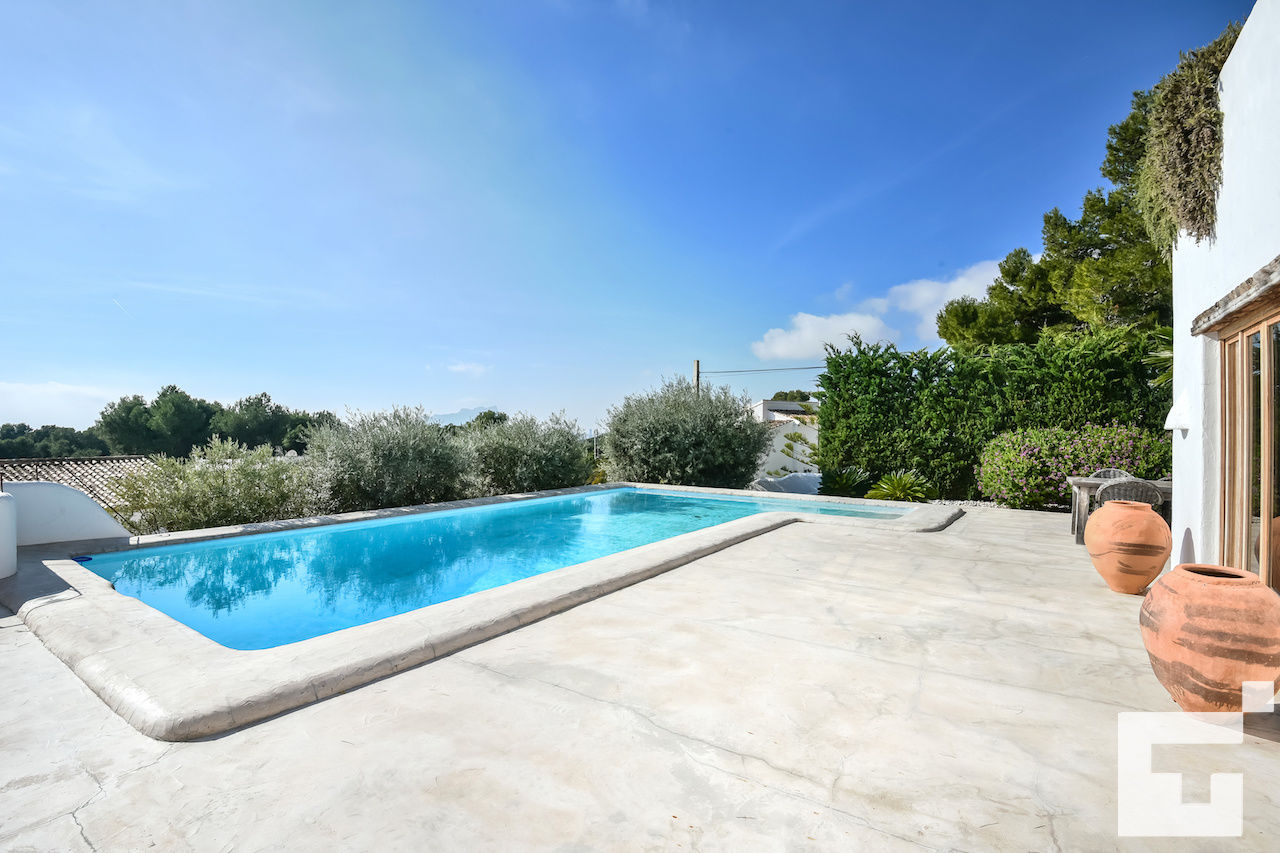 Villa confortable à Moraira, Costa Blanca, Espagne, avec piscine privée pour 6 personnes. La maison est située dans un quartier résidentiel et se trouve à 2 km de la plage de Cala Baladrar.