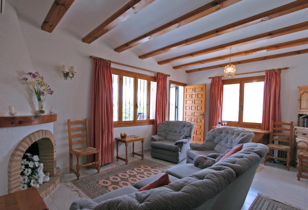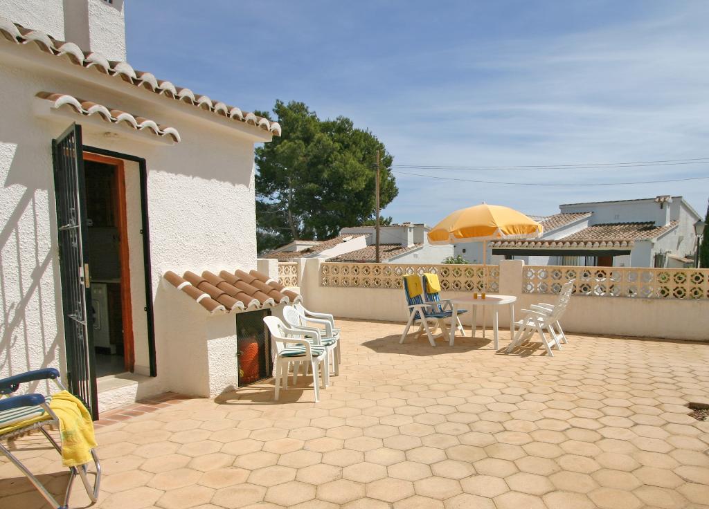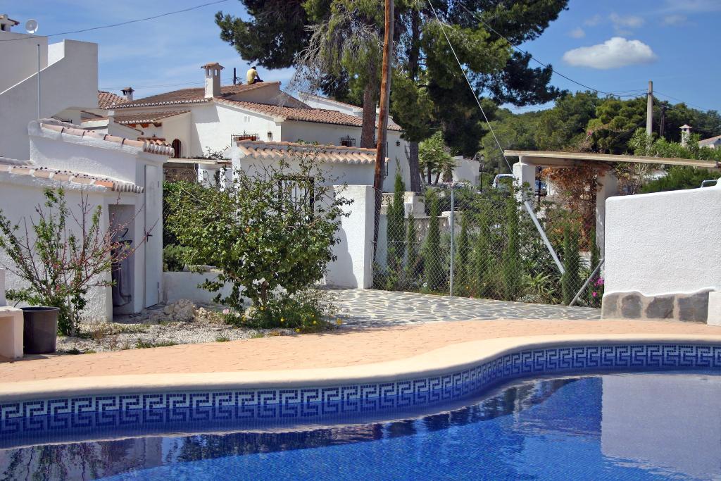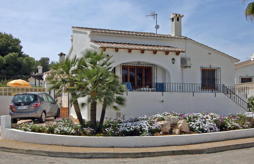 Belle maison de vacances classique avec piscine communale à Moraira, sur la Costa Blanca, Espagne pour 6 personnes. La maison est située dans une région résidentielle et à 1 km de la plage de Las Rocas.