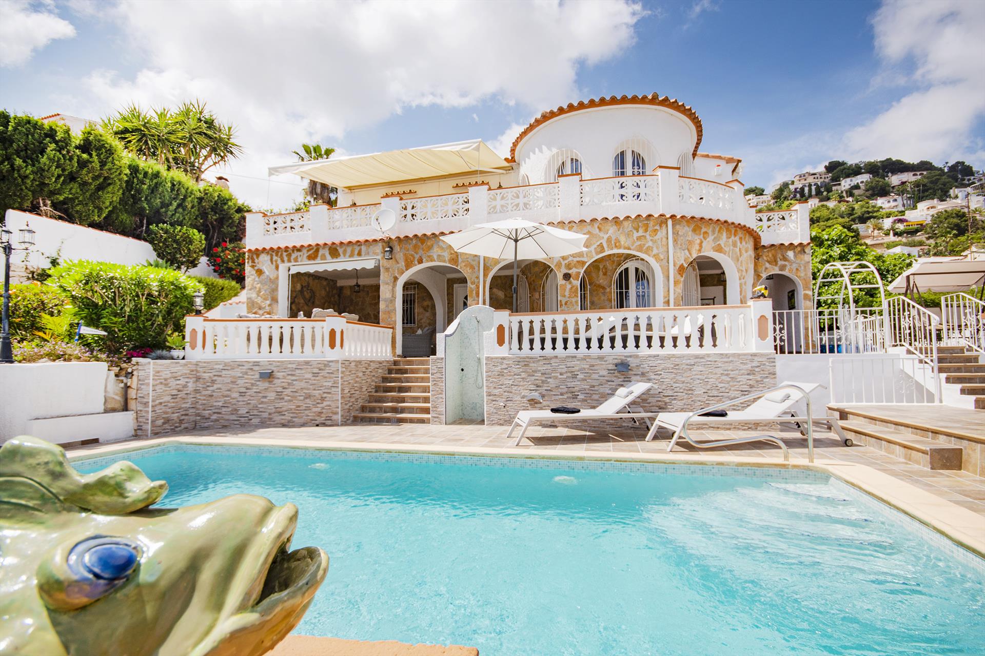 Geweldige en vrolijke villa met privézwembad in Benissa, Costa Blanca, Spanje voor 4 personen. Het huis is gelegen in een kustachtige, heuvelachtige en residentiële omgeving, op 2 km van het Cala Baladrar-strand en op 5 km van Moraira.
