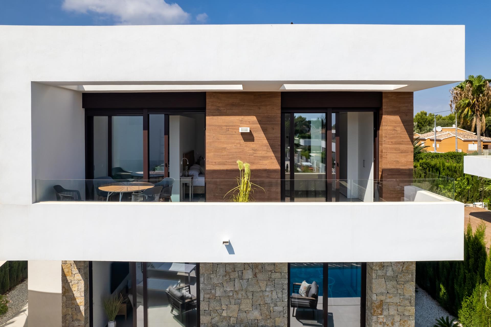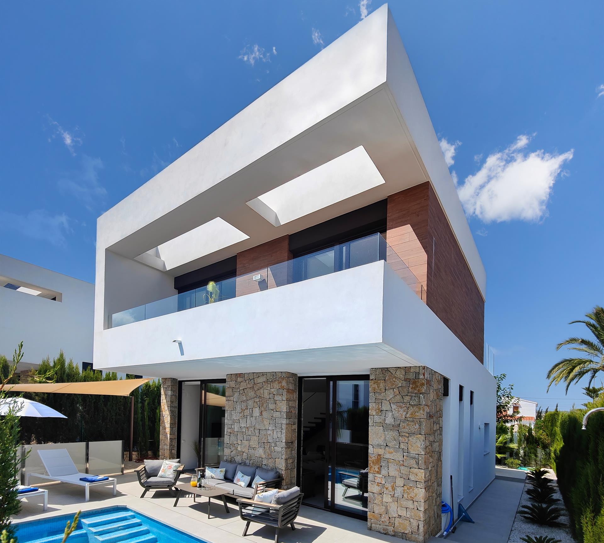 Moderne en luxe villa met privézwembad in Denia, Costa Blanca, Spanje voor 5 personen. Het huis bevindt zich in een stedelijk strandgebied, dicht bij restaurants en bars, winkels en supermarkten, en ligt 1 km van het La Marineta-strand.